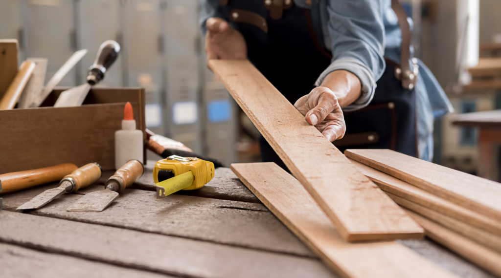 Corta 6 tábuas de comprimentos decrescentes (ex.: 120 → 20 cm). Lixa bem.